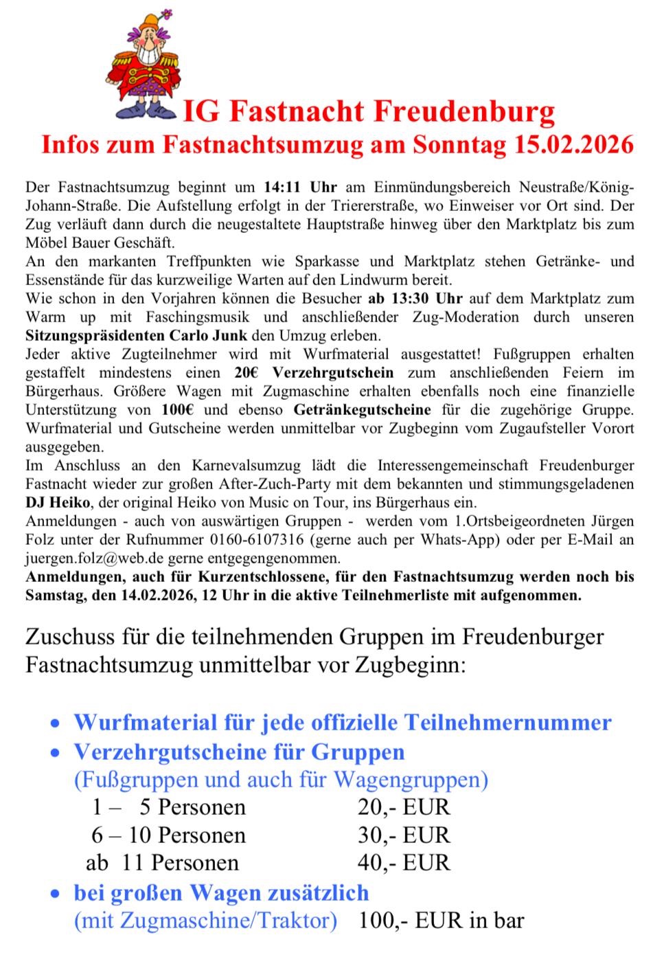Infos zum Fastnachtsumzug